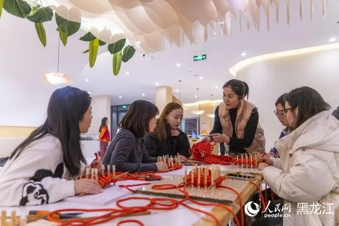 黄昏时分,民宿旁的小院里灶火正红,铁锅里的炖菜咕嘟作响,游客和乡民一边吃着热火朝天的炖大鹅,一边聊着村里的故事。饭后,不少游客留在民宿的大厅里,跟着乡民学编我国结、剪窗花。